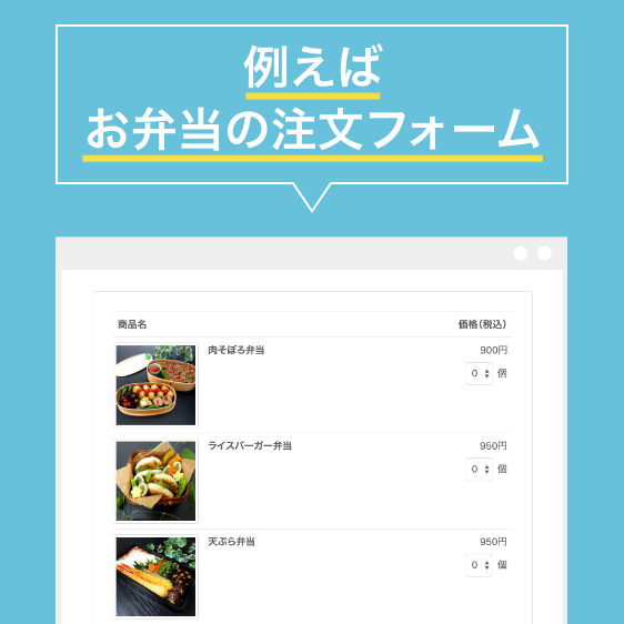 ・注文、予約、アンケート等の各種フォームを簡単作成