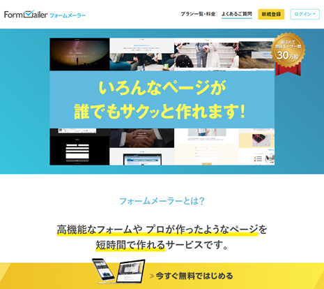 スマートフォン対応の注文フォームをはじめ、各種フォームやランディングページ(LP)・ホームページが、ドラッグ&ドロップ操作で誰でも簡単に作成可能なSaas型サービスです。延べ30万ユーザーが利用。