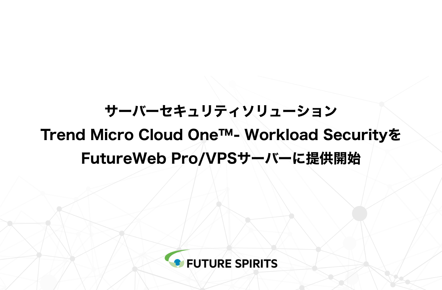 株式会社フューチャースピリッツ(本社:京都府京都市下京区、代表取締役 谷孝 大、以下フューチャースピリッツ)は、Trend Micro™社のサーバーセキュリティソリューション「Trend Micro Cloud One™ - Workload Security」(以下、C1WS)を、フルマネージドホスティングサービスのFutureWeb Pro/ FutureWeb VPSサーバーに提供を開始。