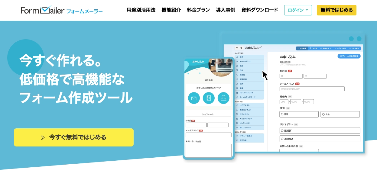 ・申込み、問い合わせ、アンケート、注文等の各種フォームを簡単作成