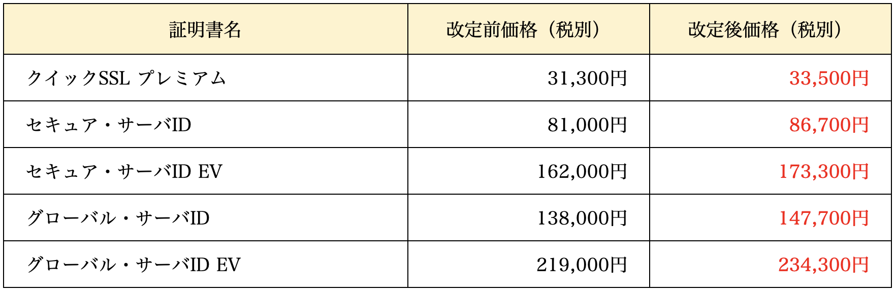 「デジサートSSL証明書」につきまして、メーカーから2024年6月5日より価格を改定する通知を受けました。そのため、弊社でも「デジサートSSL証明書」の価格改定を2024年6月5日より実施いたします。