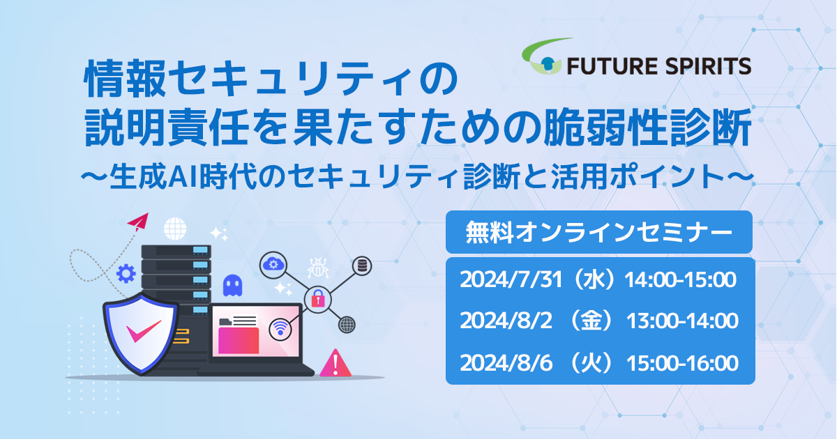 EVENT脆弱性診断をテーマにしたオンラインセミナーを、フューチャースピリッツは複数日程で開催いたします。