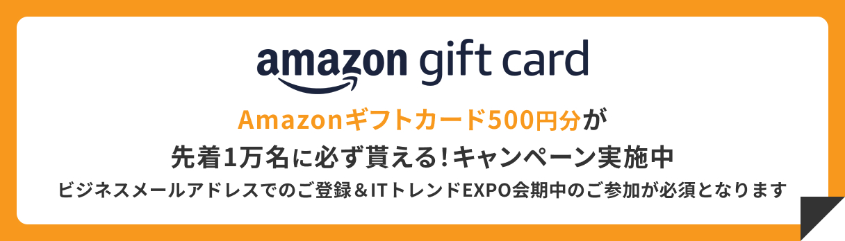 今回、ITトレンドEXPO2024 Summerに参加登録をしていただいた先着1万名様にもれなくAmazonギフトカード500円分のプレゼントがございます。